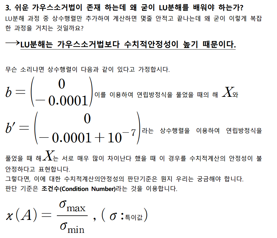 조건수가 커야 오차가 가우스소거법과 LU분해의 오차 차이가 확 크기 때문에