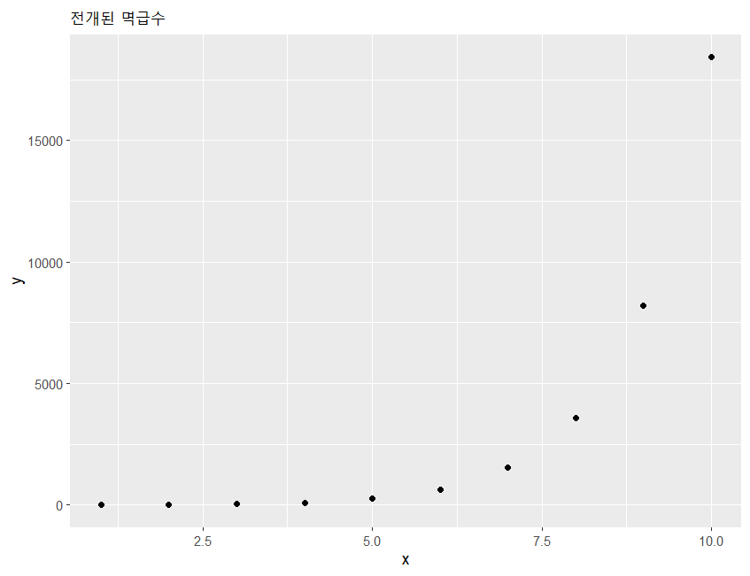 #ex) 멱급수의 멱수열들을 ggplot으로 나타내보자.